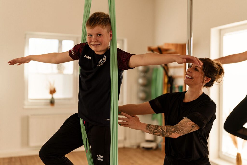 Tauche ein in eine Welt der Leichtigkeit und Entspannung mit unserem Aerial Yoga-Kurs. Entdecke die Schwerelosigkeit. Unsere erfahrenen Trainer führen dich sicher durch die Übungen und helfen dir dabei, Körper und Geist in Einklang zu bringen.
